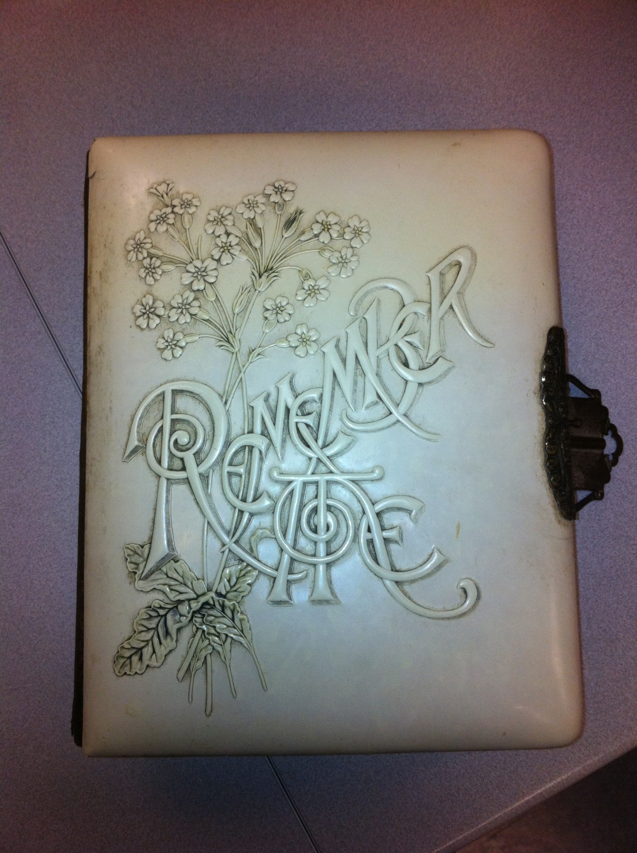 This is the album – it’s made of something like plastic, which I believe might be celluloid. Having done so much work on this, I will definitely remember!