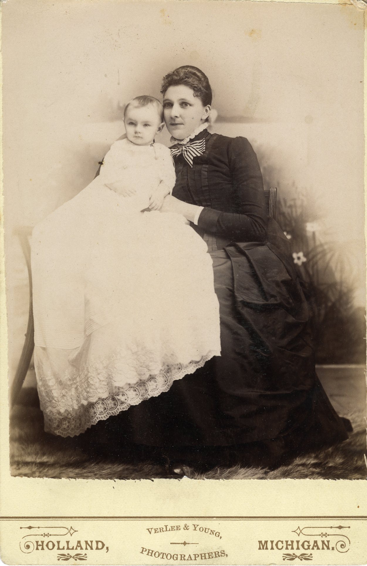 The photographer was VerLee & Young in Holland, MI. Interesting, as I was researching the photographer I found out that the VerLee family helped settle the town of Holland in the early 19th century after emigrating from the Netherlands. Holland of course, is the name given to the western portion of the Netherlands, and often used to describe the entire country. It seems the emigrants brought their home with them when they settled the area. I’m hoping to hear back from the VerLee site curator with a possible clue about the photographer.