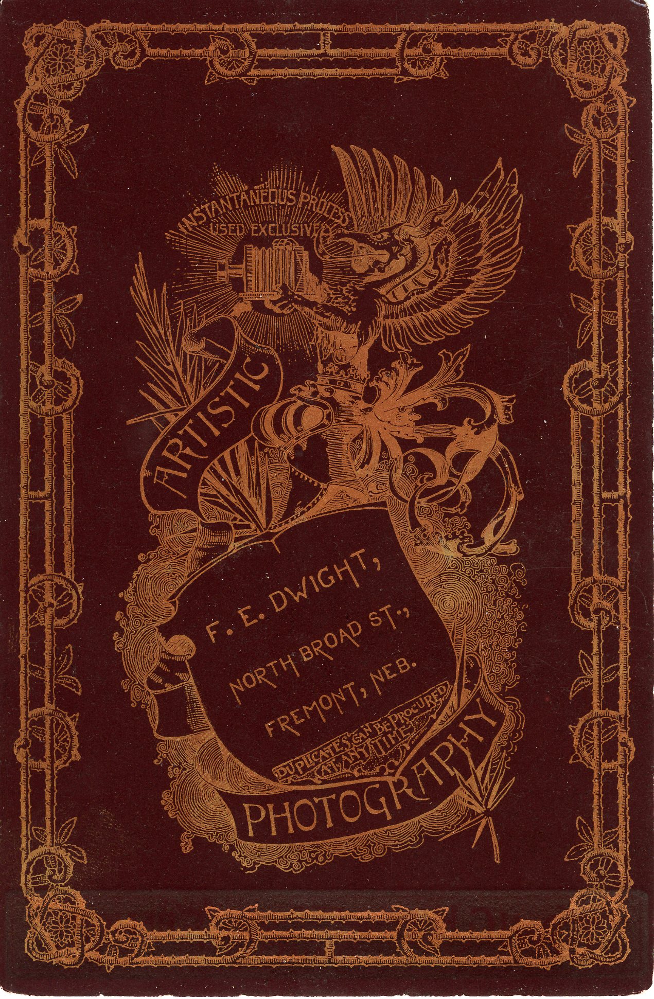 F.E. Dwight was in Marcus, Iowa in 1880. “Dwight operated his photographic studio in Fremont during 1888 or 1889.”