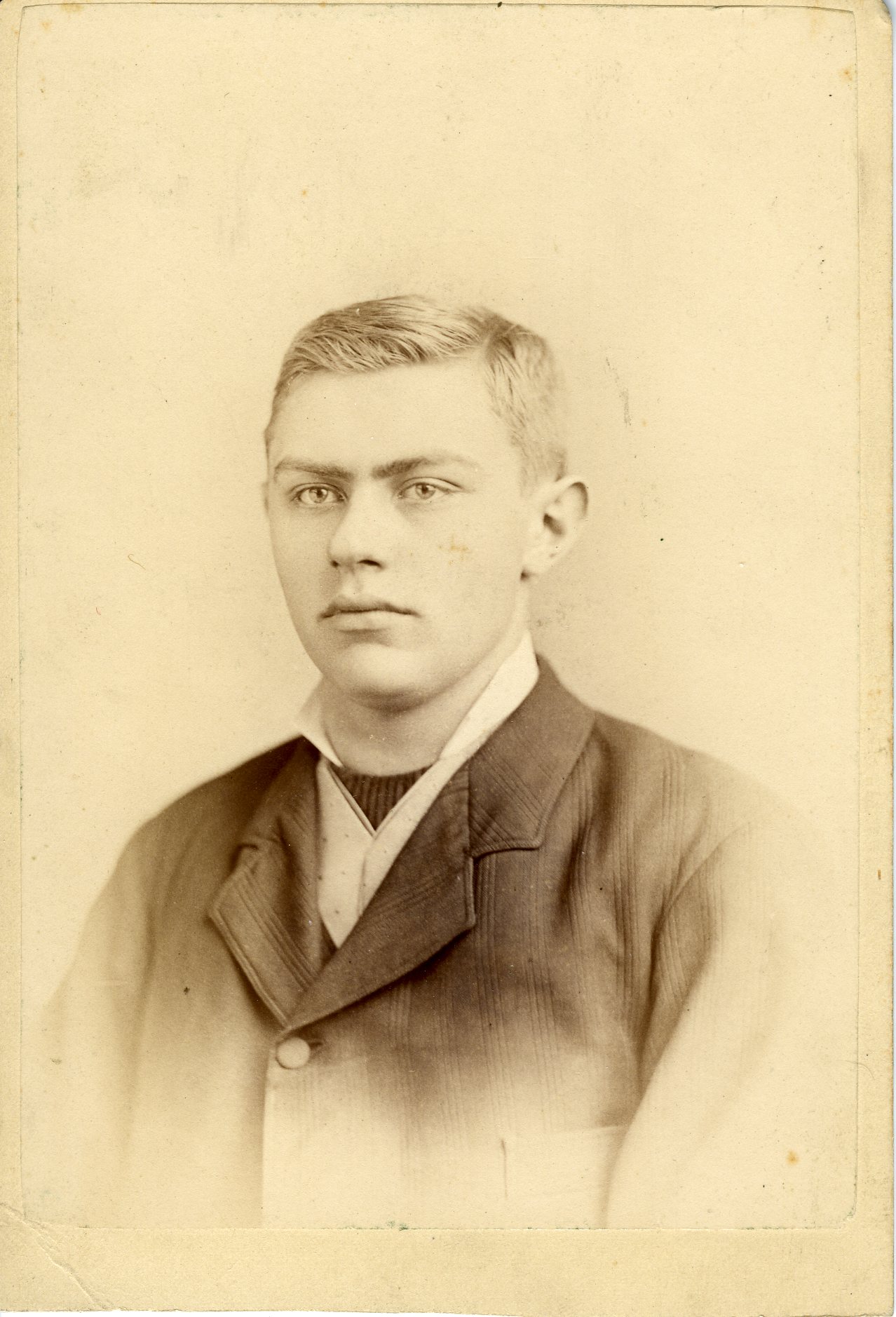 This cabinet card from the Dobb Long Book is placed next to the funeral card of Mrs. Nina Dobb, which we previously looked at a few weeks back. I can only assume – based on how I personally assemble photo albums – that this young man was close to or related to Nina Dobb. He also bears some resemblance to our mustachioed entry the other day. Could these have been Nina’s husband and son?