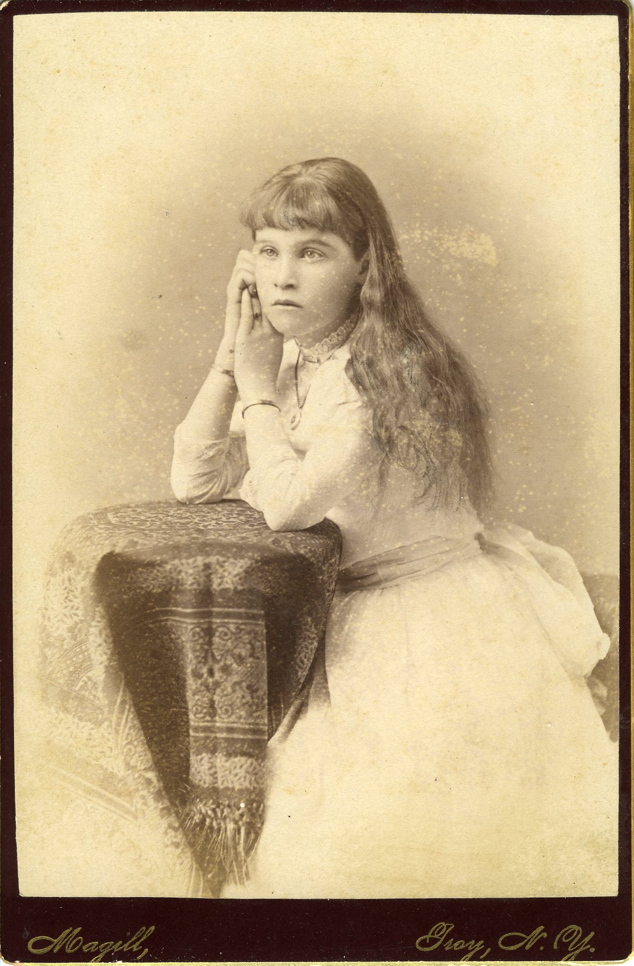 Sometimes a photo comes along that reminds you that people haven’t changed much over the past hundred years, and this is one of those for me. This young girl’s portrait captured her in a moment of reflection with her future bright in front of her. She is a beauty with long softly curling hair and a lovely oval face. She makes me hope for my daughter’s future as one filled with love and happiness.