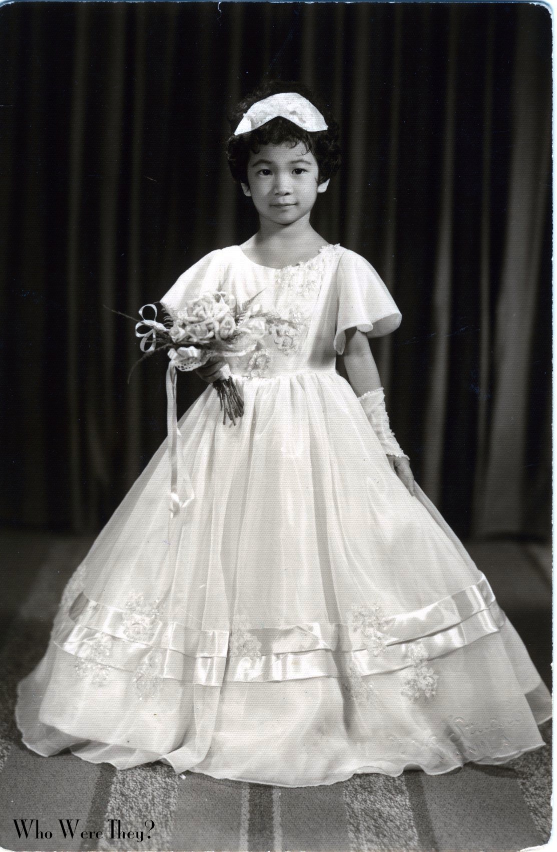 This lovely little girl was posing for her Confirmation photo, I believe. She is really quite pretty, as is her dress. Although it is difficult to read the name, in the lower right corner the photographer has embossed his mark. I can tell it was in Manila, but beyond that, I can’t tell.