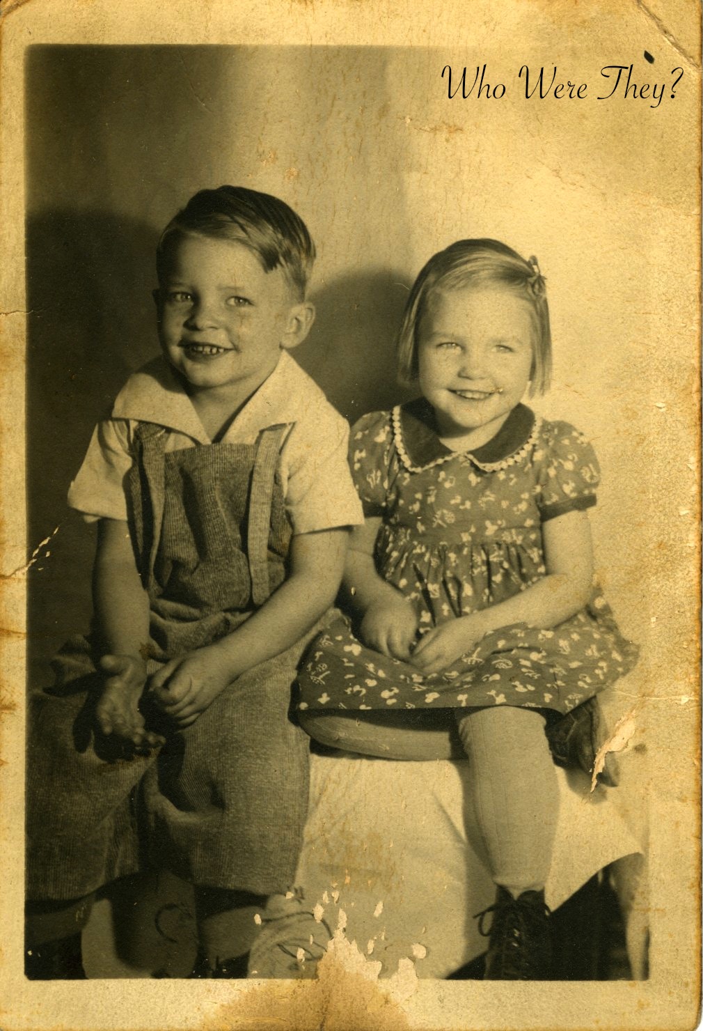 Do you think these two could be the young children from yesterday’s photo? They are Marvin and Marylyn Talbot and they are adorable. I just love Marylyn’s pinchable cheeks and bob haircut. Marvin is sporting overalls of some type and a wide collared shirt. The photo is damaged a bit but is in good shape all the same. After so many serious poses from the Victorian era, it is nice to see some smiling children from the 20th century. Thank goodness technology caught up with the quick smiles and laughing eyes of youth!