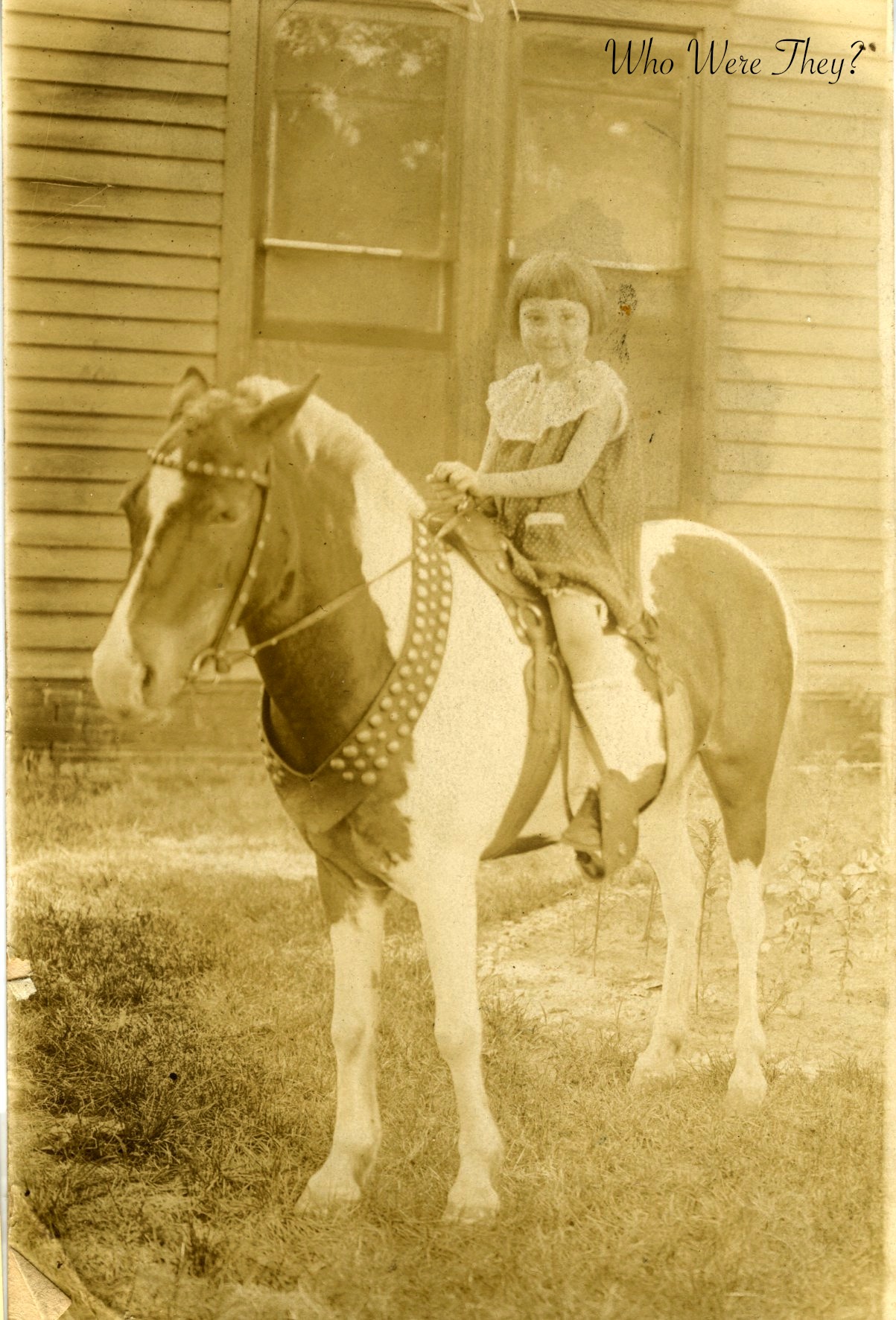 I have heard about the photographers who traveled around with their pony and for a fee would take a picture of your child riding the pony. Sometimes those photographers were con artists, but due to the prevalence of this type of photo I’d say for the most part they were on the up and up. The customer had to place a lot of trust in the photographer because they paid up front and then waited for the photo to arrive in the mail. Do you think this could be Marylyn Talbot from yesterday?
