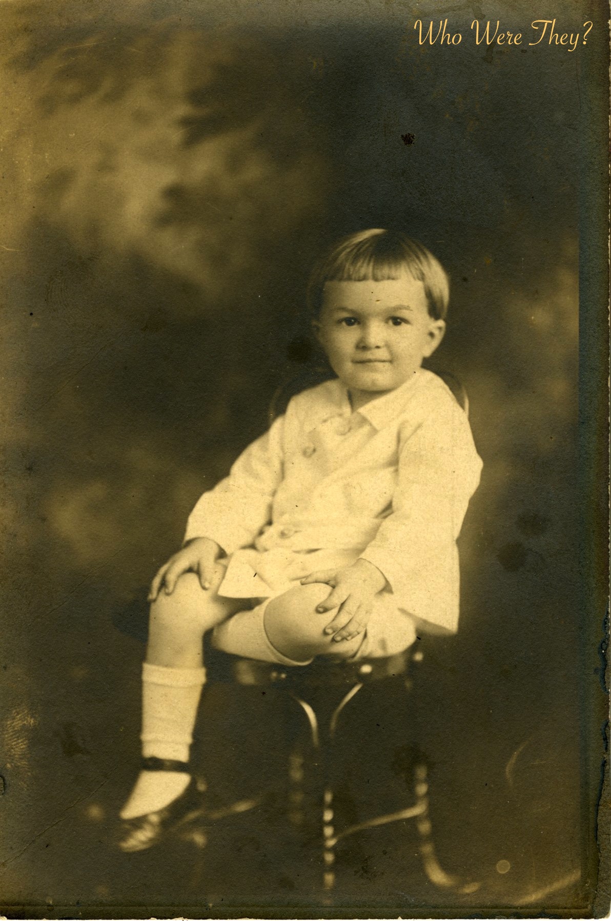 This unidentified young lad (I think) is quite handsome. Note the bowl haircut and round face. Also of note are his shoes, which are a popular children’s style from the Victorian era through the 1930s or so for children. They are a “prewalker” style that are sometimes called Chinese Slippers. The strap goes around the ankle rather than across the top of the foot as a Mary Jane shoe does. I have a pattern to make these shoes, and did, when my daughter was learning to walk.