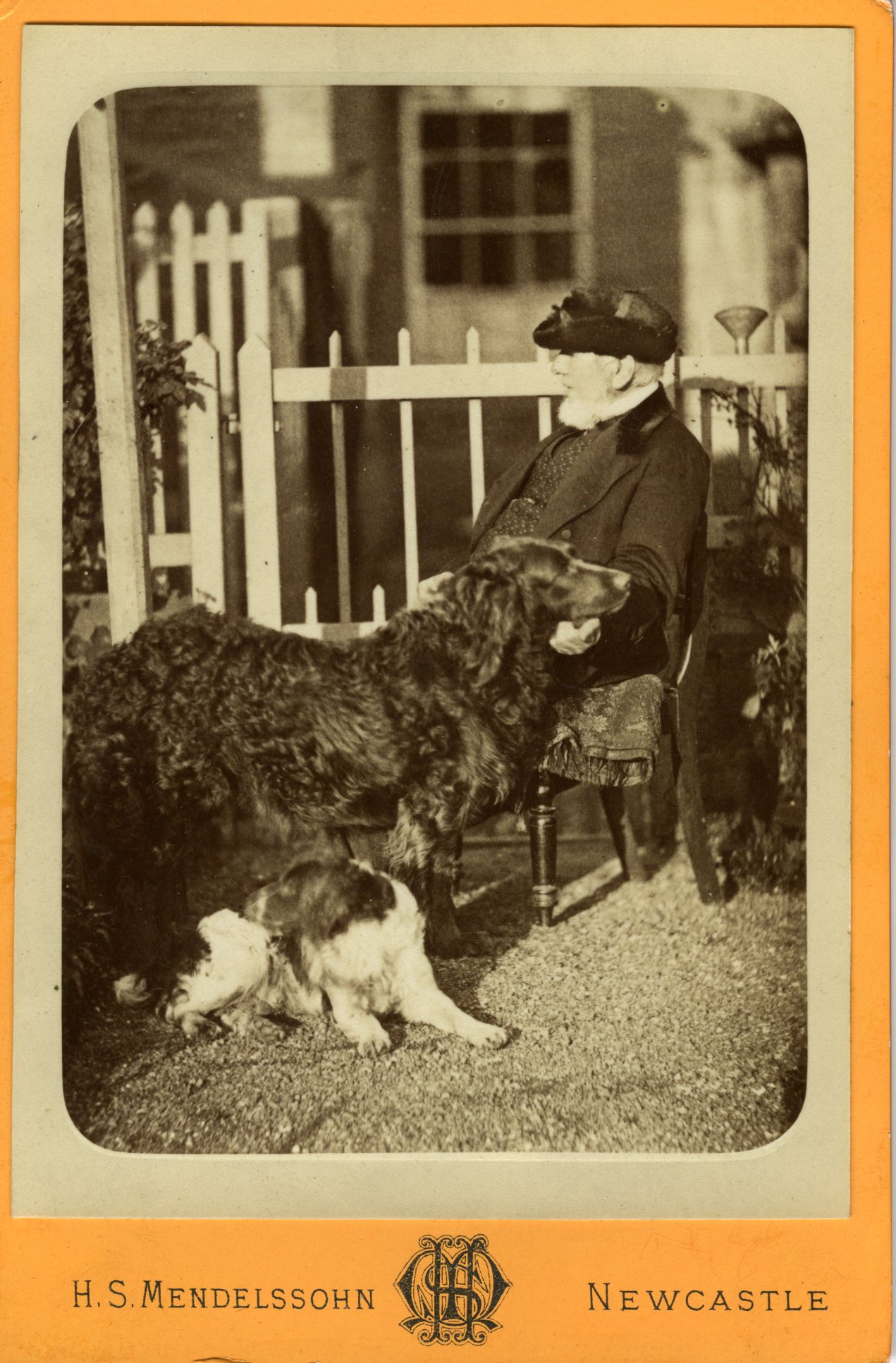 The photograph is from the 1890s almost certainly. It has a glossy finish and there is a “padded” quality to the photo, giving it actual depth. The very edges of the card are red, although that can’t be seen in the scan. The photographer was H. S. Mendelssohn at 17 19 Oxford Street, Newcastle on Tyne.