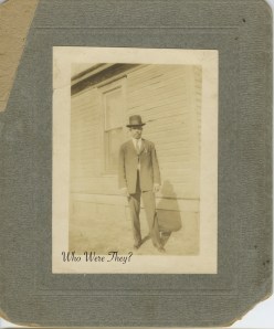 Today’s photo is a mounted snapshot and the bristol board has seen better days. However, the snapshot itself is in good condition and features a black man in a suit and hat, standing next what is very obviously a house. It’s clapboard with a large casement window. The man’s suit coat is buttoned once up high. In the nineteenth century this could be used for dating the photograph, but in the twentieth century I’m afraid I am ignorant of men’s fashion trends. I’m guessing at the 30s for this photo. Photographs were still being mounted but snapshots were more available.