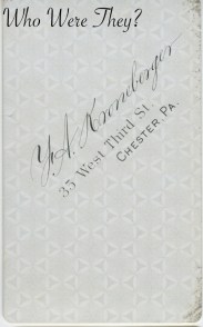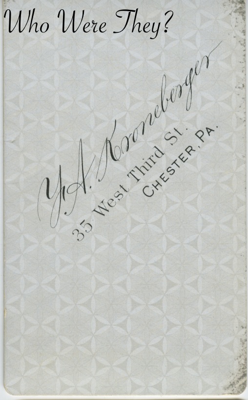 The photographer is F. (Frank) A. Kroneberger – born Sep 1847 in Maryland and living in Philadelphia (which is a short distance north of Chester – and might explain why the address is “stamped” on the photograph).