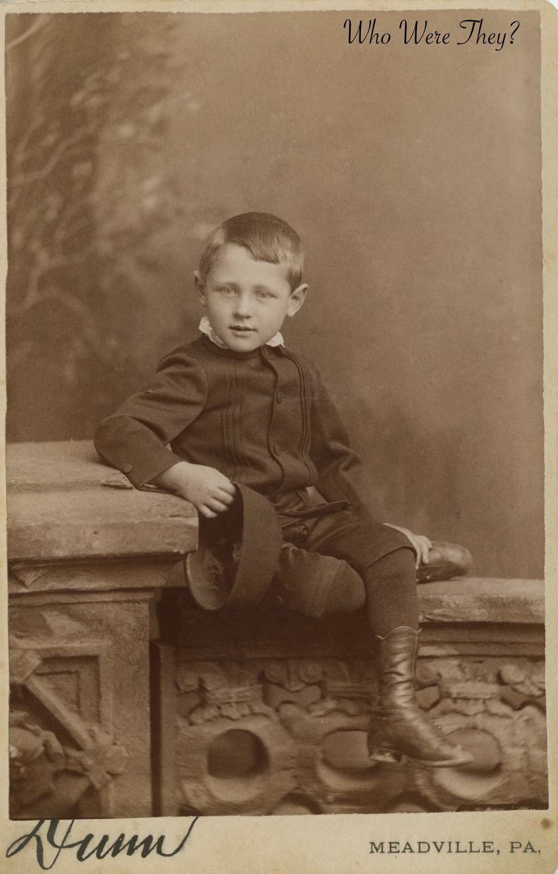The photographer was Dunn in Meadville, PA. I didn’t have much time to research this fellow, but what I did find was interesting. There was an early settler of Portland, NY named James Dunn who emigrated from Meadville, PA. This was in 1806, so it could not have been the photographer, but could certainly have been an ancestor of him. I shall try to work on this more later, but readers are welcome to play with it as well. I am tentatively dating this photo to the 1880s because that is when I believe the stone monument setting was popular in photography studios. Should I find I am wrong I will amend the date as needed.