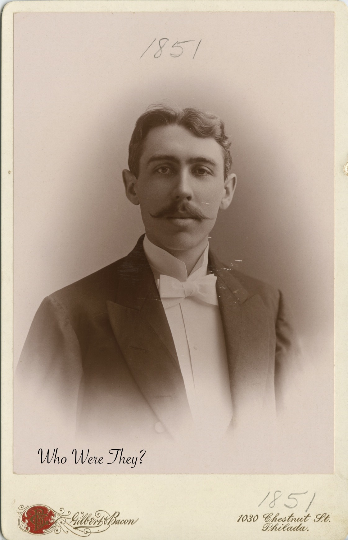 The photography studio was Gilbert & Bacon at 1030 Chestnut Street, Philadelphia, PA. They were known to be in business in the 1880s into the early 20th century. Gilbert & Bacon were renowned photographers in their time. They made images from Sitting Bull to early baseball star Wilbert Robinson. In 2011 a lot of 10 of their proofs sold at auction for $16,000!