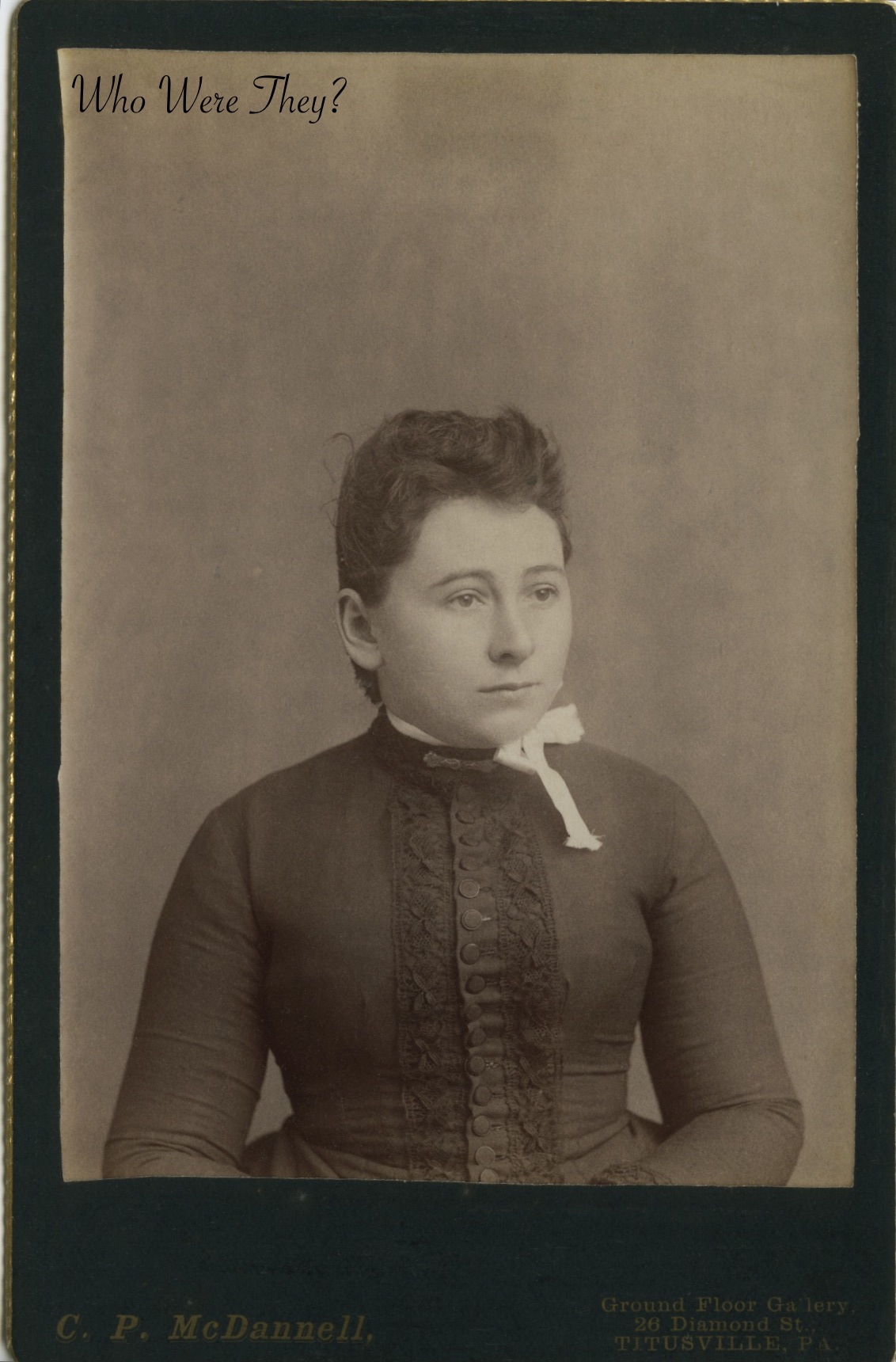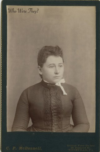 The photographer is once again C. P. McDannell in Titusville, PA. The card itself is green with a gold beveled edge.