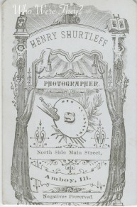 The photographer was Henry Shurtleff in Amboy, IL. I found two additional references for this photographer both dated in the 1880s.