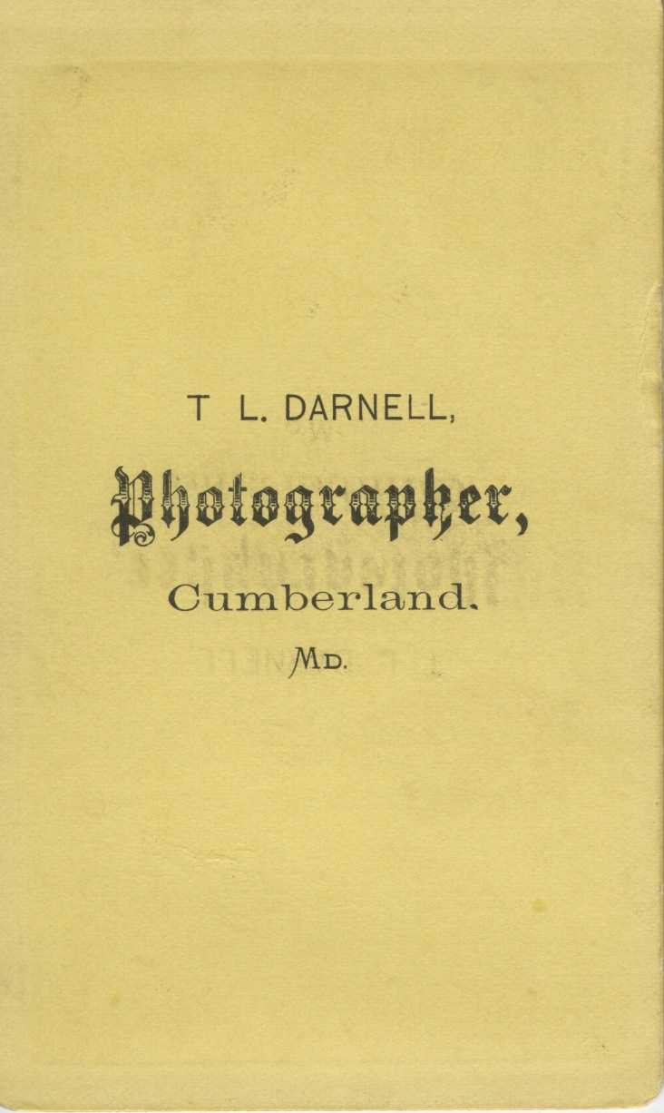 An unidentified man, photographed by T. L. Darnell of Cumberland, MD. I found a record of Thomas L. Darnell (1826-1908) having been a native of Maryland, and he was also well known as a stereoscopist in the 1890s. He was the preferred photographer for the people in this album and we will see many over the course of the album.