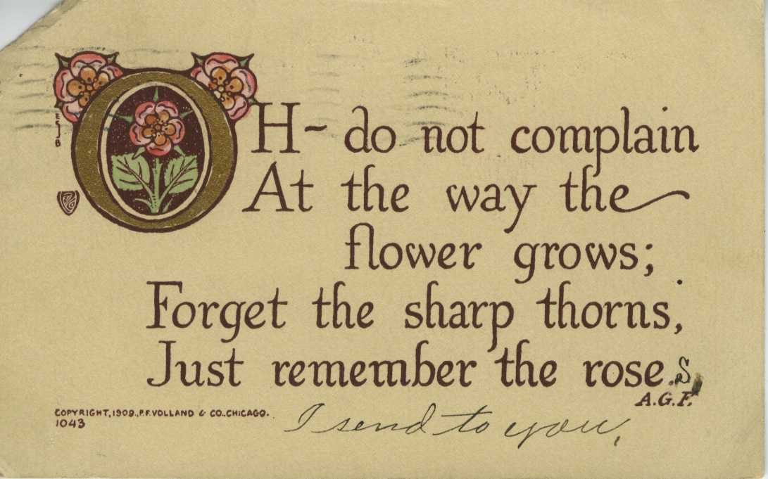 Back in 1910, Ms Sullivan must have been feeling low, because someone sent her this sentimental postal card.