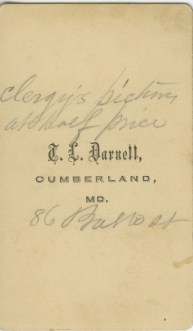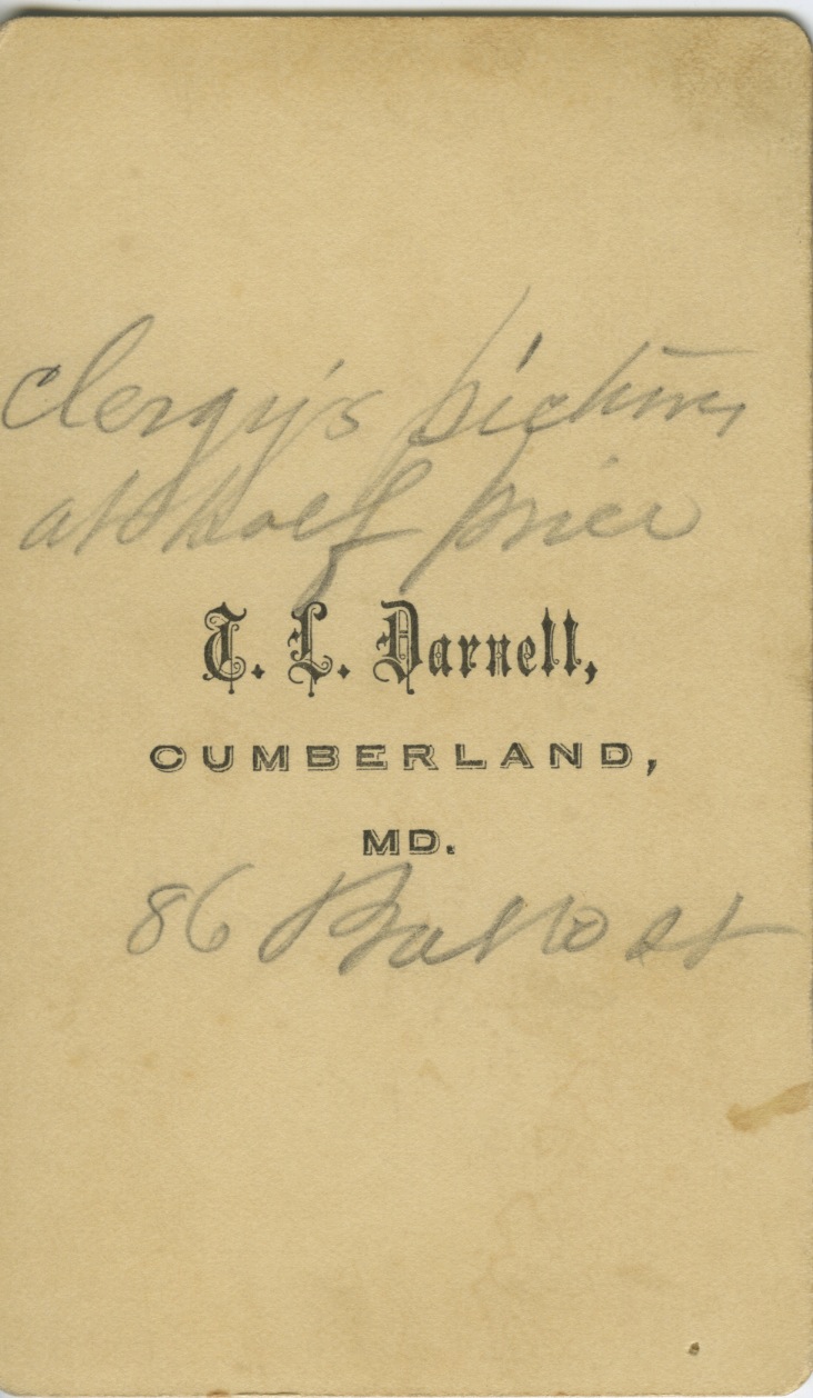 If there was going to be a movie about the people in the Leather CdV Album, Gene would definitely be cast as this character, whoever he was. As noted by T. L. Darnell the photographer, clergy photos were half price, so perhaps this is the right honorable Reverend Mr. So-and-so of Cumberland, MD.
