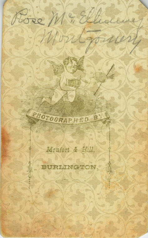 Rose selected Montfort & Hill of Burlington as her photographers. Unfortunately, they did not choose to name their state on the backmark.