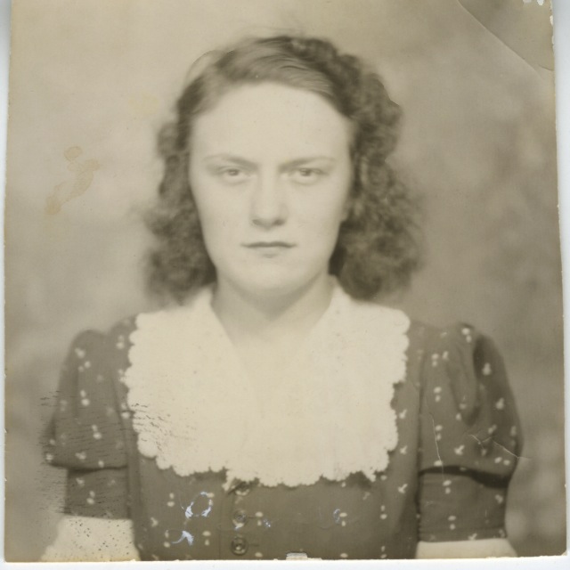 Not the best photograph of Lenore. The name is scratched into the photo across the chest and is visible when the photo is turned against the light. The photo is roughly 2″x2″.