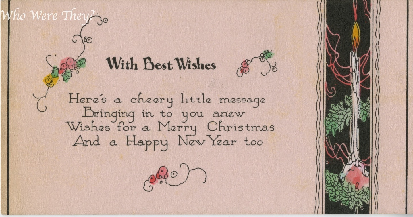 It is short and sweet. Written on the back is simply “Tom, Andy & Oren.” I would date this card to the 1920s.