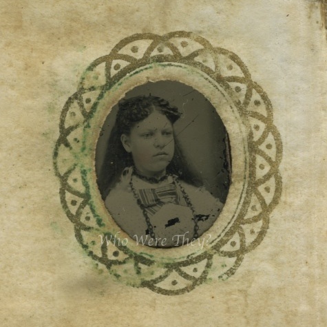 By contrast, this soft faced girl has her hair brushed out in back, with soft, frizzy curls on top, as well. She is the antithesis of her page-neighbor. She wears what looks to be a knitted shawl over her dress, and there is also a long chain of round links, first around her neck and then draped across her bodice. That was probably a style her friends were also wearing at the time.