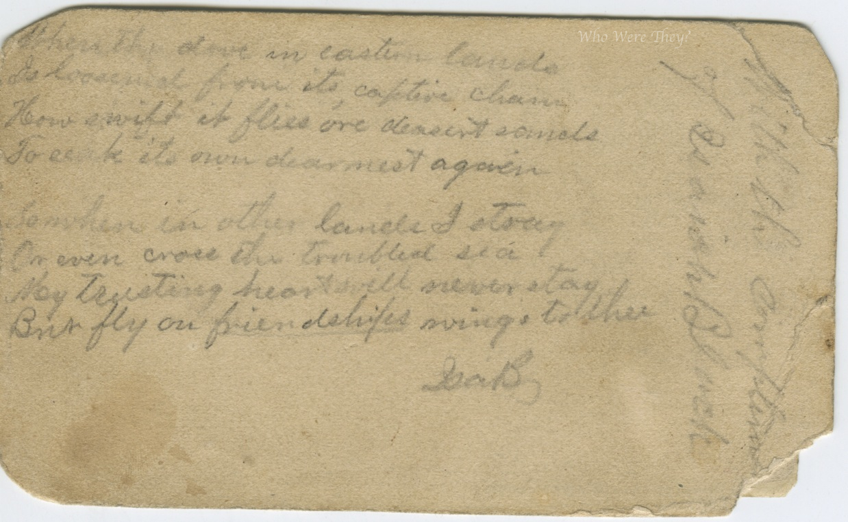 Along the right hand side it says “With compliments of Isaiah Black.” The poem goes as follows: