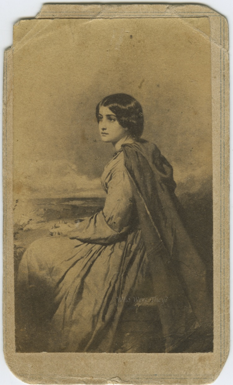 This CDV dated to the 1860s looks like a photograph of a painting or other type of illustration. That was popular for photographers to generate income in addition to their stock in trade. Photographs of famous figures, such as George Washington and Abraham Lincoln, could be purchased at the same studio where an individual might sit for their own portrait. This particular image captured my imagination because of what was written on the back.