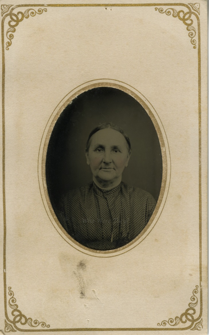 A nice tintype of an older lady, maybe in her 50s? I have heard a lot of talk lately about tintypes adding years to a person’s face, so unless I see actual age signs, I’m a bit hesitant to guess. However, this lady does have the drooping eyelids and softly falling jowls of middle age.
