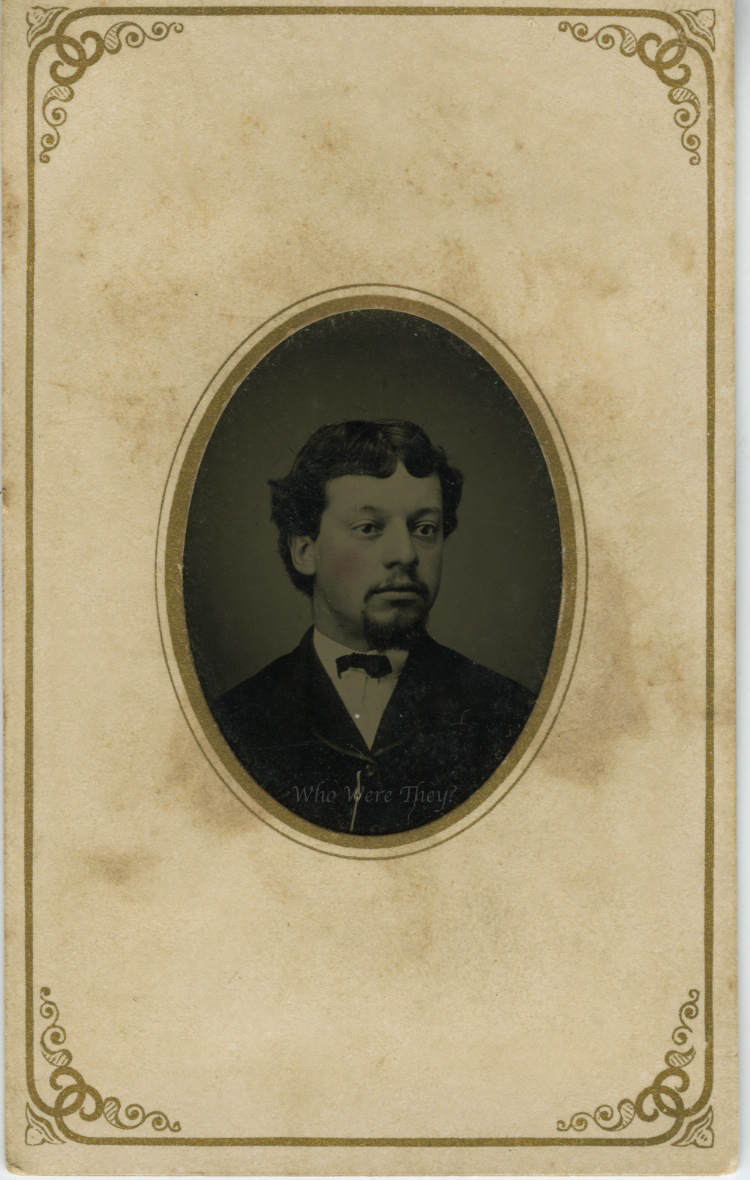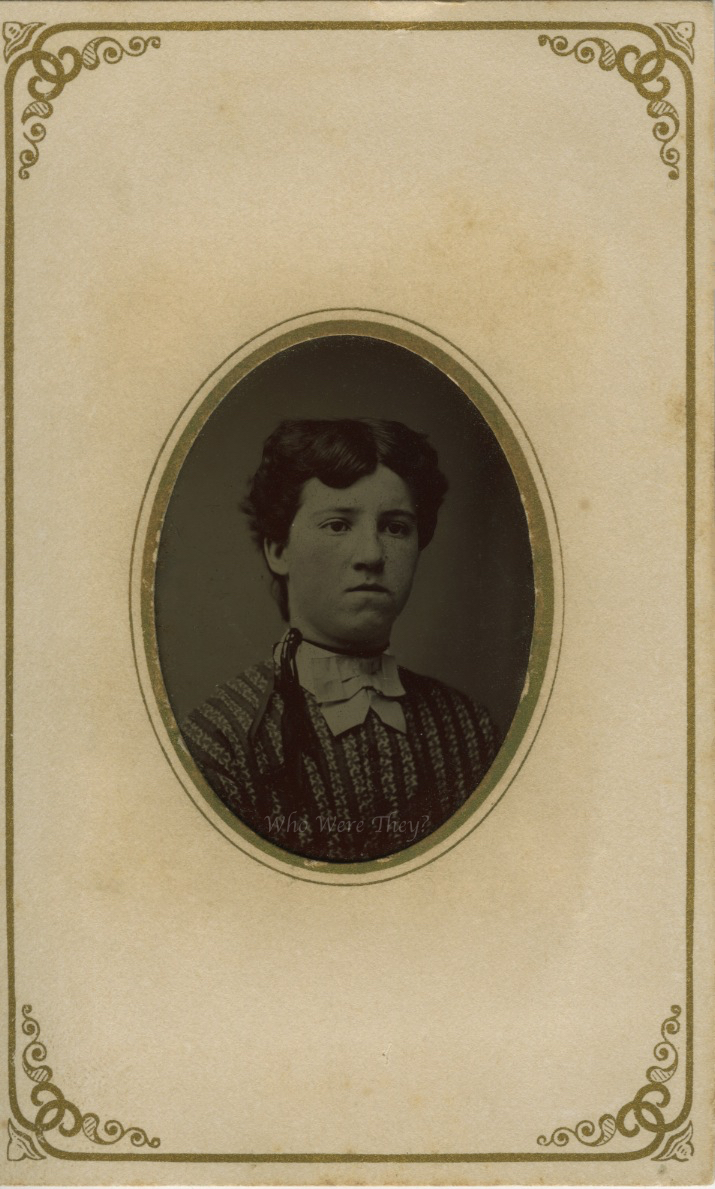 These two tintype photos share the same scrolled border as our last photo of the middle aged woman, and for that reason I suspect they were made by the same photographer, and are family. I can’t decide of they are married or siblings, however. What is your opinion?