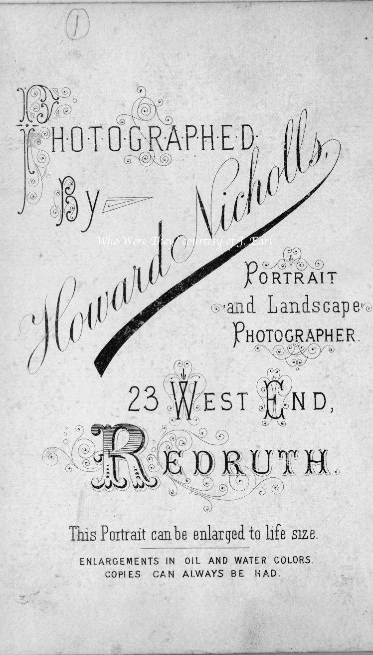 A Howard Nicholls was born in 1860 and lived in Redruth in 1894. His wife died in 1930.