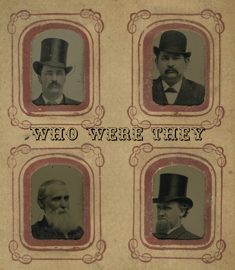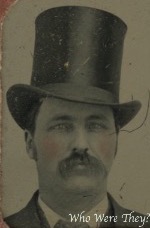 As we arrive closer to the end of this wonderful little album of gem tintypes, we find two spectacular examples of gentlemen’s top hats. The top left image has the distinct sheen of silk on that hat. It is glossy and impressive. Note the fine tinting of his cheeks to give a more “lifelike” appearance to the image. The lower right image also sports a sheen, but more muted, making me wonder what this hat might have been made of. I know very little about hats, so hopefully some helpful visitor will comment to educate us!