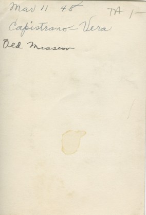 It’s March 11, 1948 and Vera is visiting the Mission San Juan Capistrano. I wonder if she is in town for the annual Fiesta de las Golondrinas – the Return of the Swallows, that is celebrated on March 19th annually? Founded in 1776, the mission has a long and storied history that California school children have to study in the 4th grade. I won’t cover it here because there’s just too much.