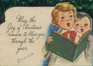 The inside reads “May the Joy of Christmas remain to bless you through the year” and it is signed by Donna.