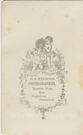 The photographer was E. S. Kellogg in Beaver Dam, WI. Based on the back mark, it suggests that children are a specialty, what with the two cherub-like figures.