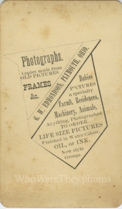 Today’s photo of a fine young lad was made by the G. W. Edmondson studio in Plymouth, OH. Note on the back of the photo, they advertise a variety of services: