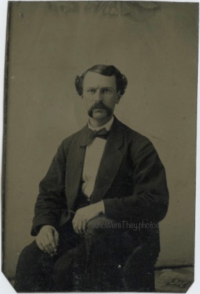 Today we start looking at a series of tintypes. I acquired them in an antique photo album. The album itself dates to the 1860s, but a number of the tintypes are obviously from later decades. This is not uncommon, as people collected photo albums over time. It’s also possible that the seller had a bunch of tintypes and just filled the album. None of the tintypes have any sort of identification on them or even photographer information. I like this particular image as the gentleman is nicely dressed and sports a fantastic mustache. Is it called a handlebar mustache – or is there some other name? Flying fork? I’m not a facial hair aficionado, so please, let us know if you have any info!