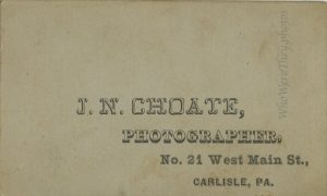 The photograph is relatively unremarkable beyond the fellow’s hair styling. He has a placid expression looking off to the side, round & soft face, and somewhat boring clothing. That being said, he was hopefully more interesting in person and just didn’t photograph well. The image was made by J. N. Choate in Carlisle, PA.