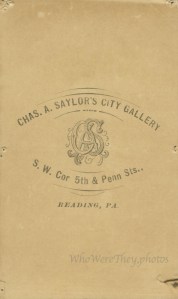 The photo was made at Chas. A. Saylor’s City Gallery in Reading, PA. There are a few other images made by Saylor on the site – click the category Chas. A. Saylor under Photographers to see them all.