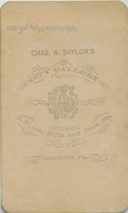 Charles A Saylor must have rather prolific as I have other photographs by him. You can click on the category under Photographers over on the side. His City Gallery was located in Reading, PA.