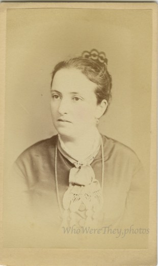 The photo was made by Charles A. Saylor’s City Gallery. To see other photos from this studio, click on the link under Photographers. I think she looks a bit like Contemplative who was also photographed by Saylor. Could they have been related?