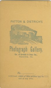 The photo was made by Patton & Dietrich’s Photograph Gallery in Reading, PA.