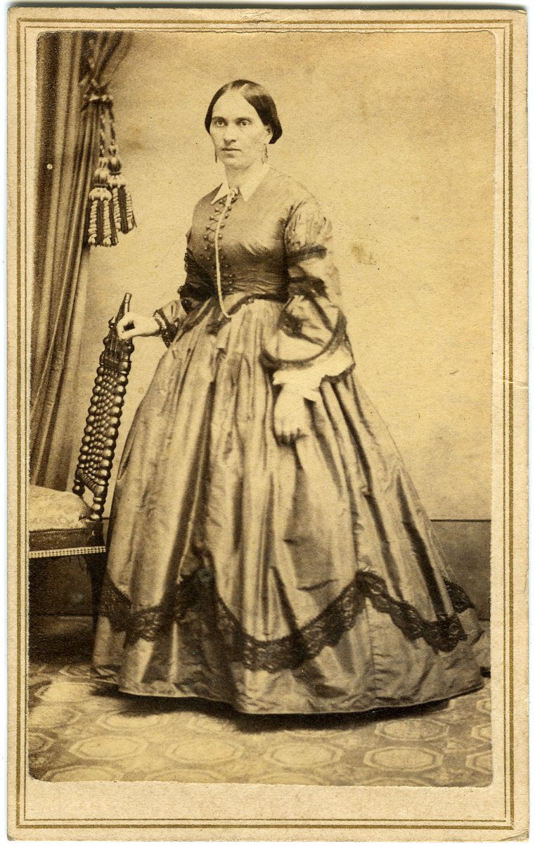 These are very general terms to help us date some photos by the fashions ladies are wearing. Keep in mind that just like today, women held onto their favorite fashions, and in America we were generally a year or two behind European fashions. Older women tended to dress in the styles they felt comfortable in as young women, so don’t be surprised to have a firm date of a photo with older fashions displayed. Middle class and above had the more elaborate designs, but each station of life mocked its betters. Clothing was remade when possible to accommodate changing styles, or made into children’s clothing. Finally, the corset was worn through all eras as a foundation garment and clothing was structured to fit over a corseted body. Women in the lower classes had corsets too, but they were probably more like flexible stays. Think about what you do with your worn out undergarments and that will answer your question of “why aren’t there any surviving pieces to study?” The phrase “loose woman” comes from women who did not wear corsets and it is obvious in their appearance once you know what you are looking at. The corset did not truly fall out of fashion until the 1920s, so any historical novel claiming their heroine was progressive or disdained a corset is the result of a lazy author. I welcome all historical fashion comments – professional or amateur – to add to the resources!