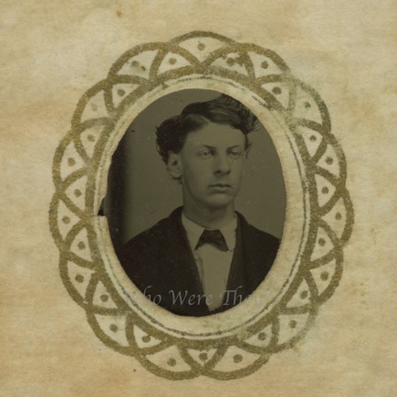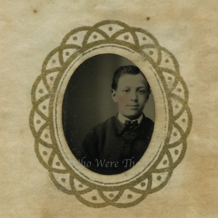 It is unfortunate that these gems seem to tend toward off center, because I’d like to see the whole person. This young man, maybe an early teenager, has nicely slicked hair and a tidy suit. His bow tie is small above a dark colored coat. The unknown photographer tinted his cheeks to show the bloom of youth on his face.